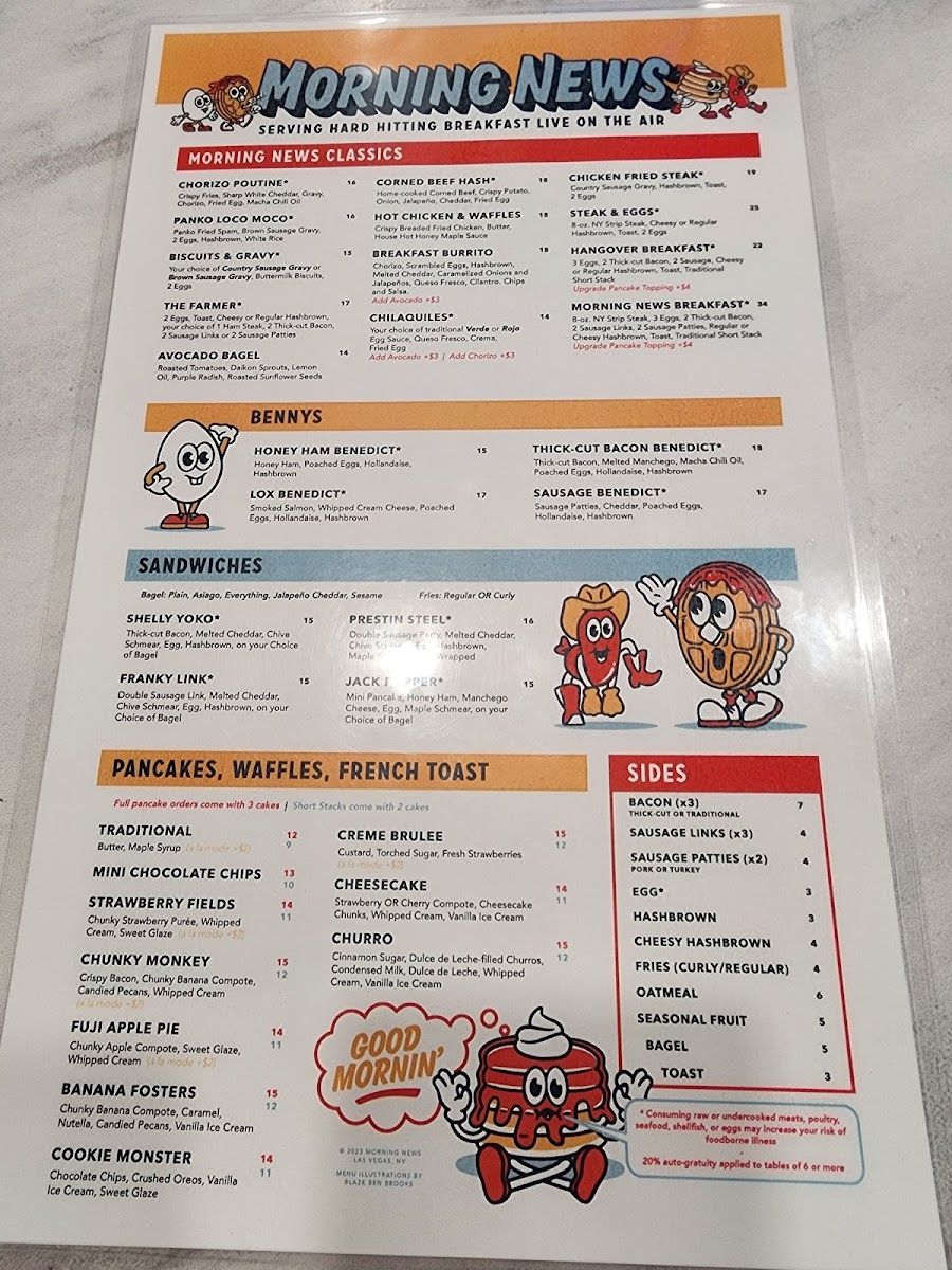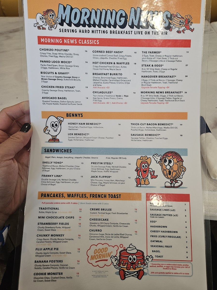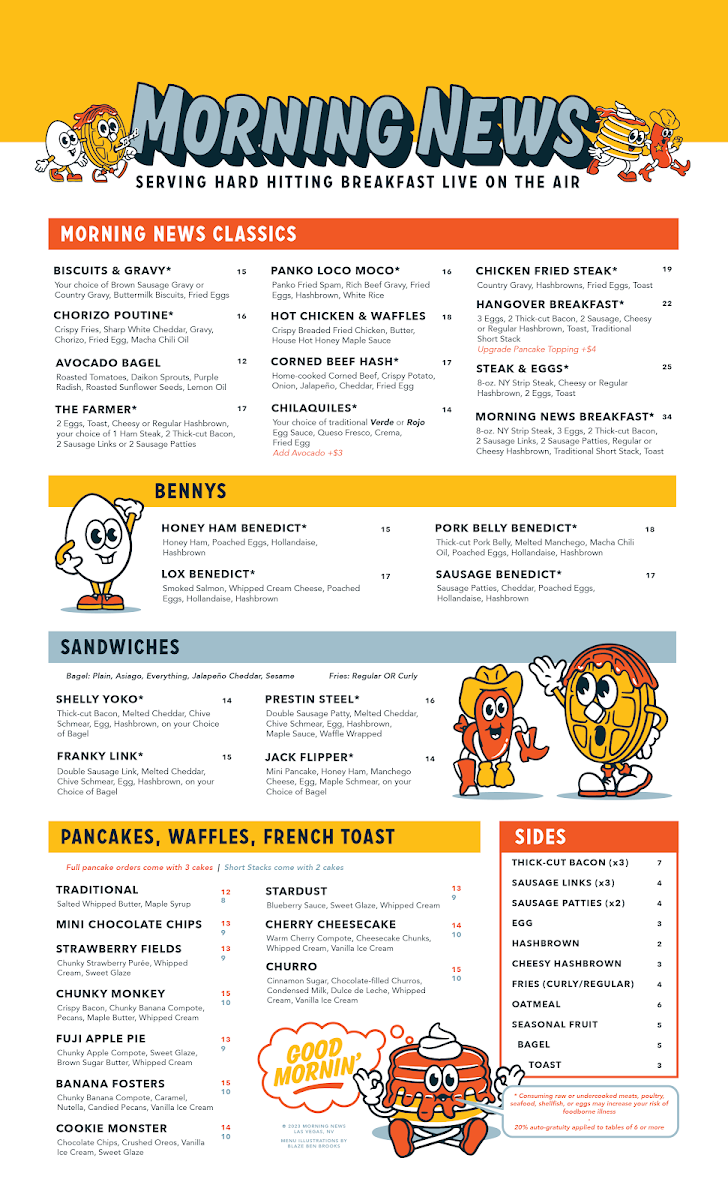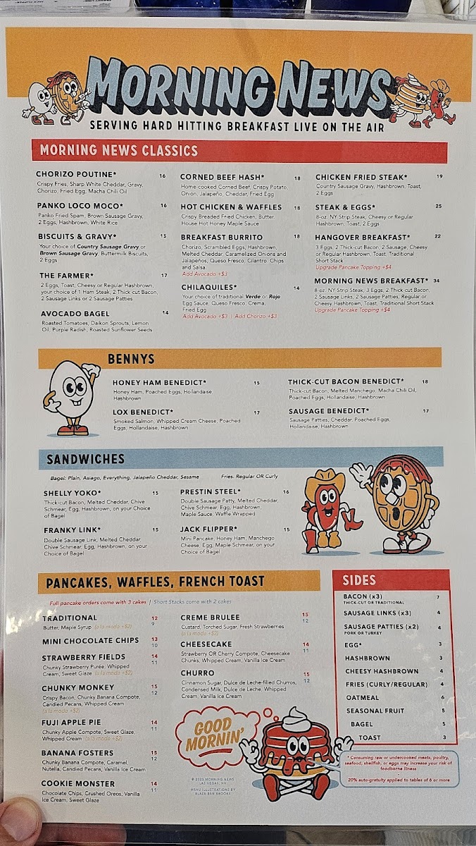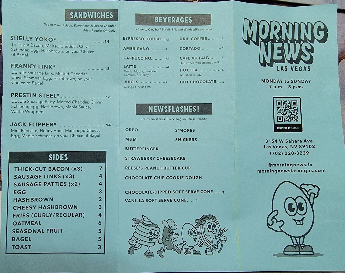 If you find yourself in Las Vegas, start your day right at Morning News, a delightful breakfast restaurant located at 3154 W Sahara Ave. This charming eatery captures the essence of a cozy and inviting breakfast spot, adorned with whimsical cartoon-themed decor that adds a touch of playfulness to your dining experience. With exceptional hospitality and a warm atmosphere, it feels like home from the moment you step inside.